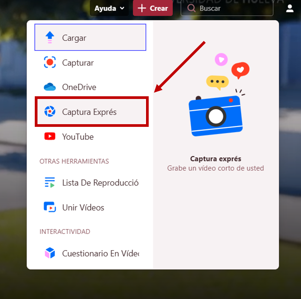 Una vez dentro, pulse sobre el menú + Crear y seleccione Captura Exprés.